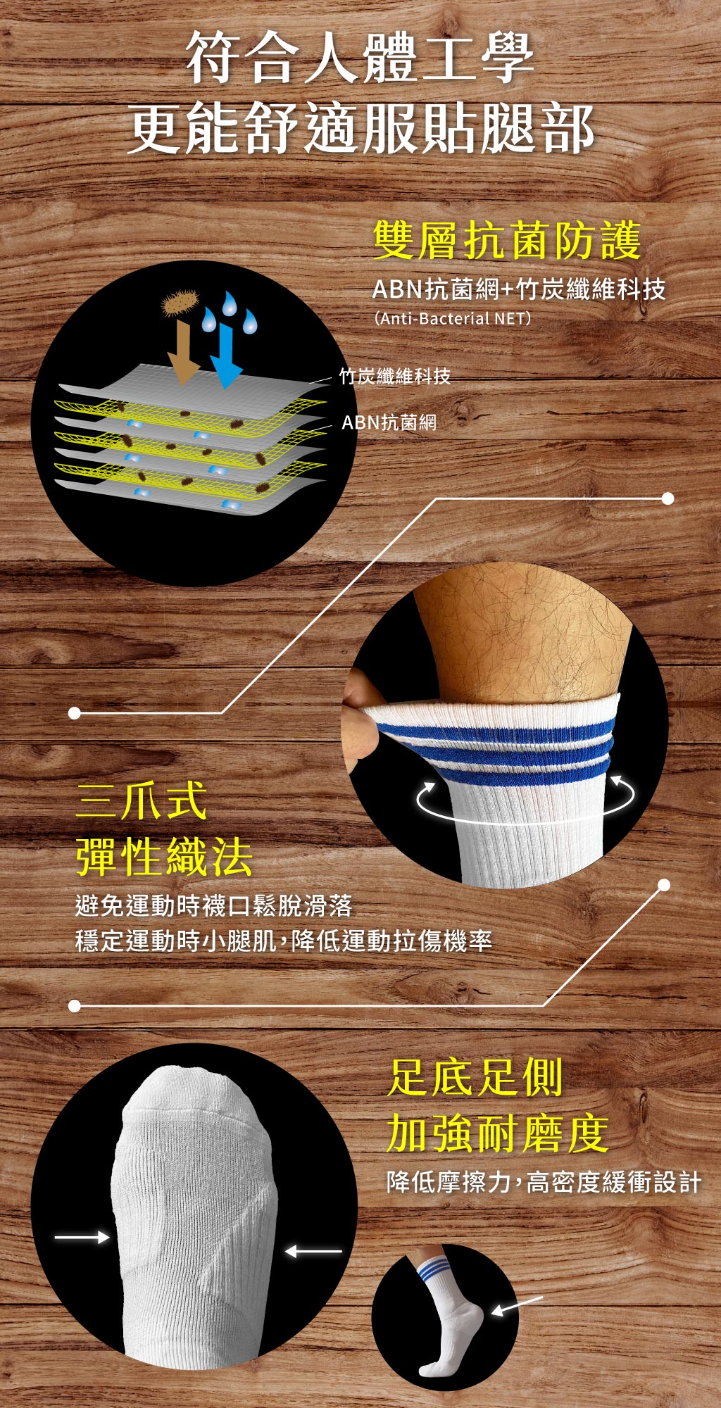 #彈性織法 #局部性特殊機能 #ABN抗菌網 #足底足側耐磨防護